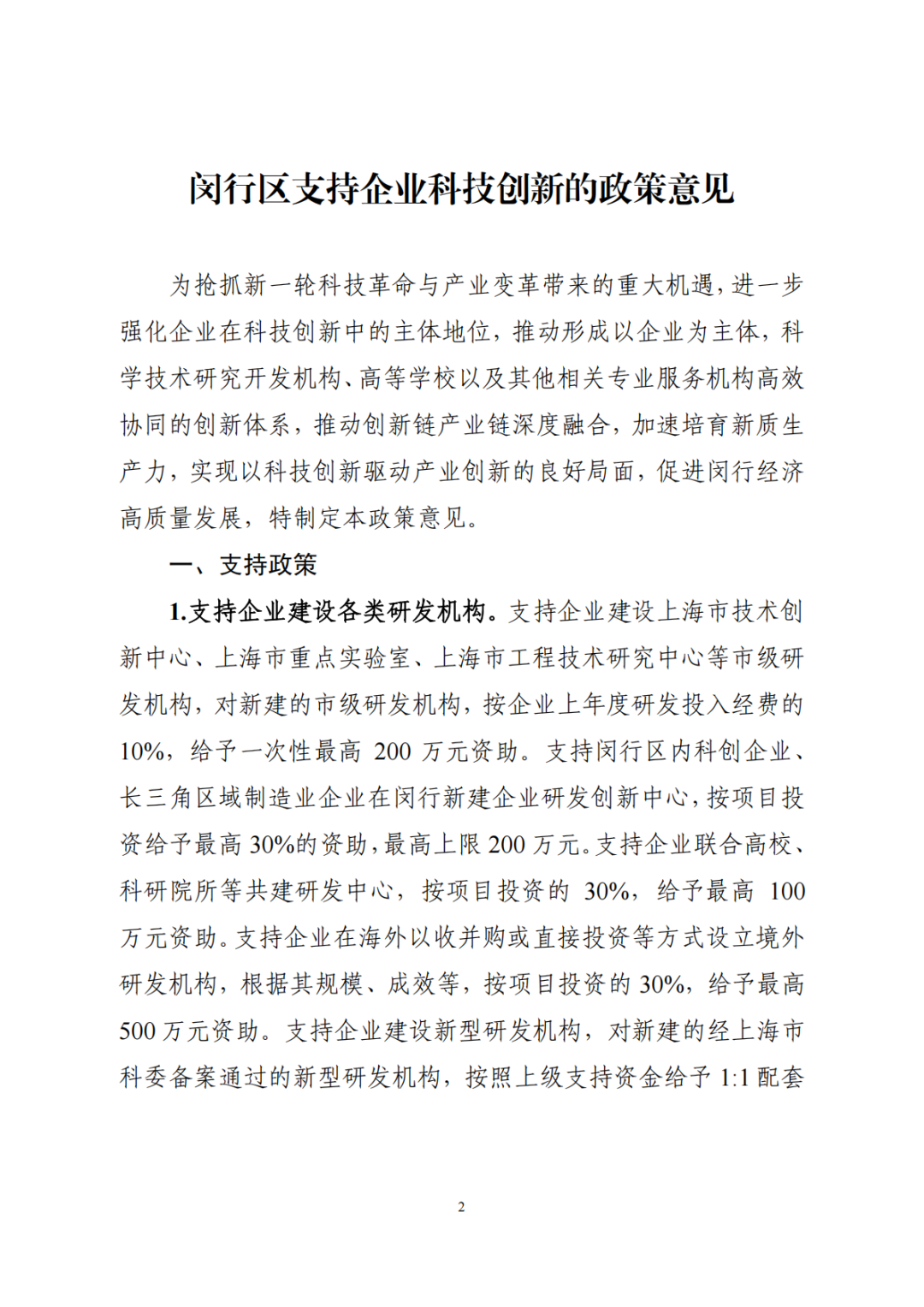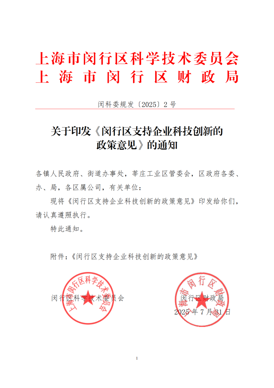 为贯彻落实十二届市委七次会议、七届区委十一次全会精神,聚焦企业创新主体地位,通过构建高效协同的创新体系,推动创新链产业链深度融合,加速培育新质生产力,为闵行区经济高质量发展注入强劲动力,经闵行区政府同意,闵行区科委、闵行区财政局联合印发了《闵行区支持企业科技创新的政策意见》(闵科委规发〔2025〕2号)(简称“闵行科创10条”)。